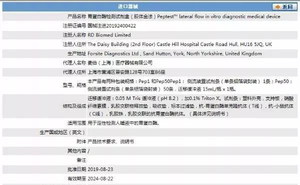 2019年9月,由美安医药和英国RD Biomed公司合作推出的唾液胃蛋白酶反流检测试剂Peptest获批上市。迈迪思创作为医疗器械领域NMPA一站式法规咨询服务商,为美安医药提供了临床试验方案撰写、监查、质控、统计分析和报告撰写等临床试验技术服务。